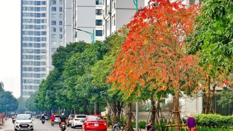 (VOV5) -Chẳng đợi đến mùa thu "cây cơm nguội vàng, cây bàng lá đỏ", đầu tháng 3, nhiều cây lá trên đường phố Hà Nội trở mình khoác chiếc áo vàng cam rực rỡ.