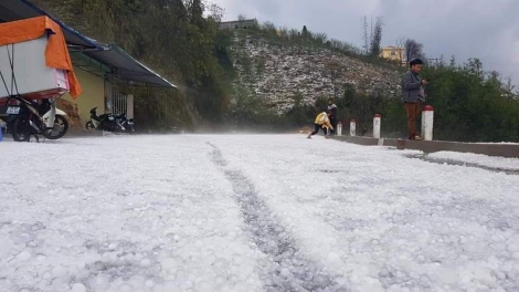 Ảnh: Mưa đá trắng như tuyết phủ kín mặt đất ở Lai Châu