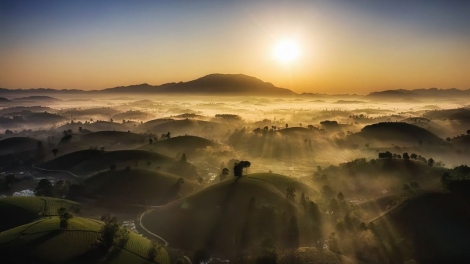 Đồi chè Long Cốc đẹp mê hồn trong ánh bình minh