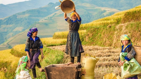 (VOV5) - Sau một mùa nước đổ, những thửa ruộng bậc thang loang loáng ánh bạc ở Hoàng Su Phì bỗng trở mình đón lấy màu vàng như rót mật của những bông lúa chín rộ. Hà Giang bắt đầu vào thu.