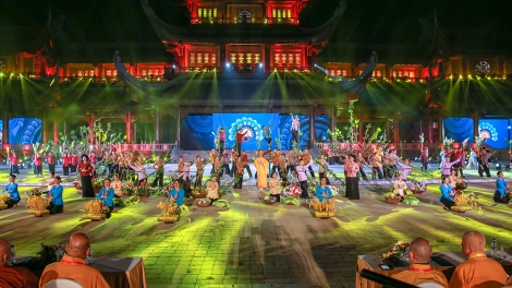 (VOV5) - Chương trình nghệ thuật Đại lộ Di sản do VTV tổ chức đã diễn ra thành công tối qua tại chùa Tam Chúc, tỉnh Hà Nam với sự trình diễn tuyệt vời của 8 quốc gia.