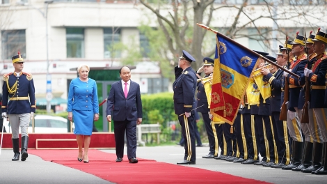 (VOV5) -Sáng 15/2, tại Bucharest, Thủ tướng Romania Viorica Dancila đã chủ trì lễ đón trọng thể Thủ tướng Nguyễn Xuân Phúc thăm chính thức Romania.