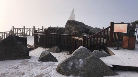 (VOV5) - Sáng 17/1, đỉnh Fansipan, Sapa, Lào Cai trắng xóa một lớp băng tuyết dày khoảng 7mm.