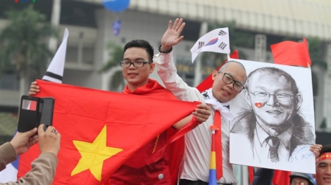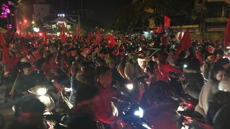 (VOV5) - Ngay sau khi tiếng còi chung cuộc vang lên, biển người hướng về trung tâm thành phố Hà Nội ngày một đông. Cờ hoa tung bay rợp trời, tiếng kèn, nhạc phá tan bầu không khí yên bình của Hà Nội về đêm.