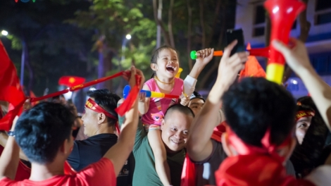 Cổ động viên Thủ đô thâu đêm ăn mừng chiến thắng đội tuyển Việt Nam