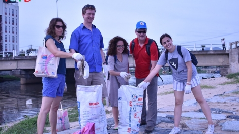 (VOV5) - Sáng 26/6, tại bãi biển Đà Nẵng, hơn 500 người dân, cán bộ, chiến sỹ các lực lượng vũ trang và lãnh đạo Bộ Tài nguyên-Môi trường, UBND TP Đà Nẵng cùng du khách tham gia Lễ phát động chương trình “Chung tay bảo vệ đại dương” và ra quân làm sạch bãi biển.