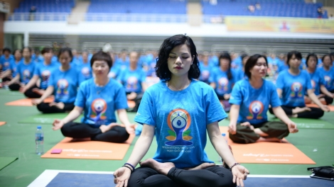 (VOV5) - Ngày 16/6, tại Nhà Thi đấu điền kinh Hà Nội đã diễn ra màn đồng diễn Yoga độc đáo khai mạc chuỗi 11 sự kiện nhằm kỉ niệm ngày Quốc tế Yoga 21/06 tại Việt Nam diễn ra từ 16/6 đến 15/7/2018 tại các tỉnh thành.