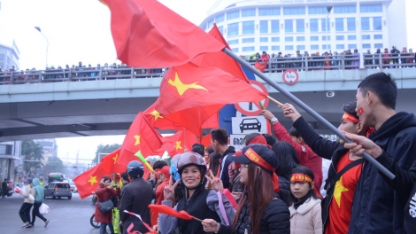 (VOV5) - Ngày 28/1, hàng vạn cổ động viên cuồng nhiệt đã tụ tập trước cửa VIP A sân bay Nội Bài và các tuyến đường để chờ đón đoàn quân U23 Việt Nam trở về.