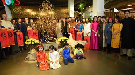 (VOV5) - Với mong muốn tìm hiểu về nét văn hóa truyền thống đặc sắc của Việt Nam, nhiều đại sứ, nhà ngoại giao nước ngoài đã đến đình So, ngôi đình đẹp nhất xứ Đoài để cùng dân làng và nhóm Đình làng Việt thưởng thức Tết Việt.