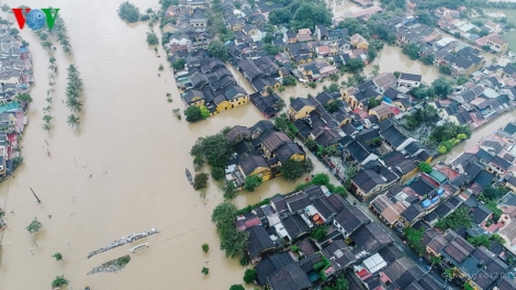 (VOV5) - Nước lũ lên nhanh nhấn chìm nhiều vùng trũng thấp của thành phố Hội An, như phường Thanh Hà, Cẩm Nam, Minh An, Cẩm Phô, Cẩm Châu, xã Cẩm Kim,... Những địa phương này có nơi ngập sâu hơn 3m. Nhiều tuyến phố, con đường nối khu dân cư bị lũ chia cắt, gây cô lập với bên ngoài.