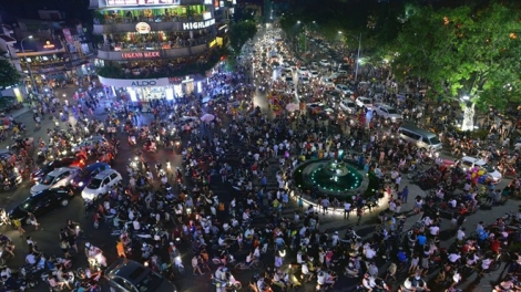 (VOV5) - Tối 15/9, hàng nghìn người dân ở thủ đô đổ về trung tâm thành phố chơi Tết Trung thu khiến các tuyến đường quanh hồ Hoàn Kiếm (Hà Nội) đông nghẹt.
