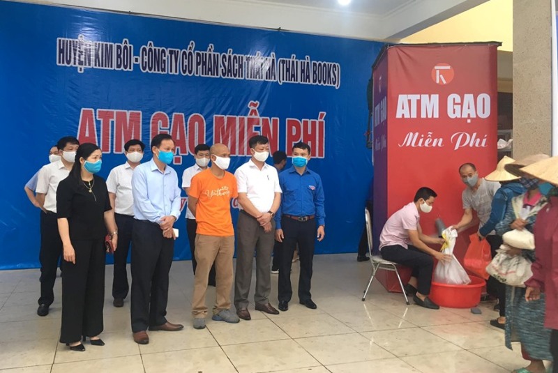 7 giờ 40 phút sáng 23/04/2020, chúng tôi có mặt tại Trung tâm Văn hóa Thể thao huyện Kim Bôi, tỉnh Hòa Bình. Theo như thông báo là 8h00 mới chính thức đưa ATM gạo miễn phí này vào hoạt động, nhưng lúc chúng tôi vào đến “máy nhả gạo”, nghe tin hơn 100 bà con nghèo dân tộc Mường đã được nhận gạo. Ông Bùi Văn Điệp, Phó chủ tịch huyện cho biết bà con nghèo ở địa phương quá vui mừng và háo hức nên đến rất sớm. Trời lại mưa to nên Ban tổ chức quyết định cho ATM gạo miễn phí “nhả gạo” ngay mà không cần đến giờ. Ông cũng bày tỏ lòng biết ơn đến Tiễn sĩ Nguyễn Mạnh Hùng, Chủ tịch công ty sách Thái Hà, cũng là người sáng lập ra các ATM gạo miễn phí tại Hà Nội và một số tỉnh thành khác trên toàn quốc.
