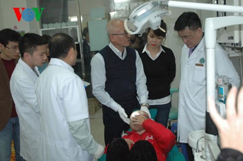 | Các bác sĩ bệnh viện Răng Hàm Mặt Trung ương khám cho bà chài. |