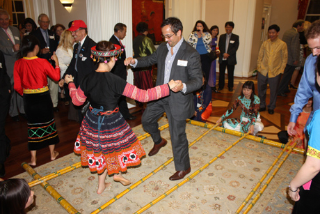 Không chỉ tham gia đấu giá từ thiện, khách tham dự còn có cơ hội thưởng thức những nét văn hóa độc đáo của Việt Nam qua những món ăn nổi tiếng như phở, nem, bún chả, hay điệu múa sạp độc đáo của đồng bào dân tộc phía Bắc.