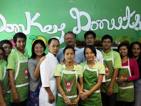 Hiệu bánh Donkey Bakery cũng nhận được sự hỗ trợ rất nhiều từ các Đại sứ quán và mọi người. Họ đã động viên các em rất nhiều. Đã có một nghệ nhân làm bánh mỳ người Đức tuy ở tuổi 75 nhưng nhiệt tình sang truyền nghề cho các em khuyết tật ở đây. Vượt qua rào cản về ngôn ngữ, khiếm khuyết của cơ thể, bằng thiện chí và tâm huyết, chuyên gia này đã hết lòng truyền đạt kinh nghiệm cho các em.