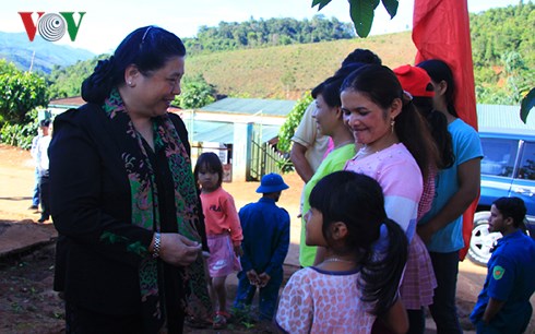Nhân chuyến công tác tại tỉnh Kon Tum và nhân Ngày gia đình Việt Nam 28/06, Phó Chủ tịch Thường trực Quốc hội Tòng Thị Phóng tặng quà và nhà tình nghĩa cho các gia đình có hoàn cảnh khó khăn.