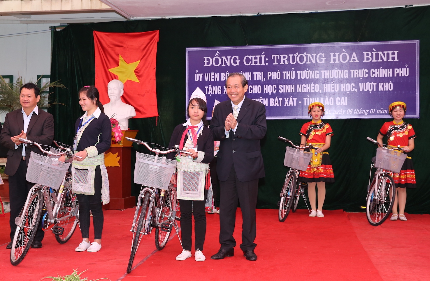 Phát biểu tại buổi lễ, Phó Thủ tướng Trương Hòa Bình đề nghị chính quyền địa phương thường xuyên quan tâm các trường học ở vùng sâu, vùng xa; có chính sách ưu tiên cho học sinh dân tộc thiểu số nghèo hiếu học, có điều kiện đến trường học tập.