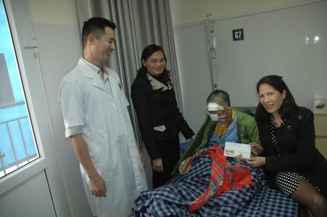 (VOV5) - Hôm nay, bà Võ Thị Thanh Hoài, đại diện cho Quỹ “Tấm lòng Việt - chia sẻ yêu thương” của Hội Vườn việt ở Châu Âu trao tặng áo ấm và 3 triệu đồng tiền mặt cho bà Triệu Mùi Chài, dân tộc Dao ở tỉnh cao Bằng vừa phẫu thuật khối u khổng lồ trên mặt tại viện Răng hàm mặt Trung ương.