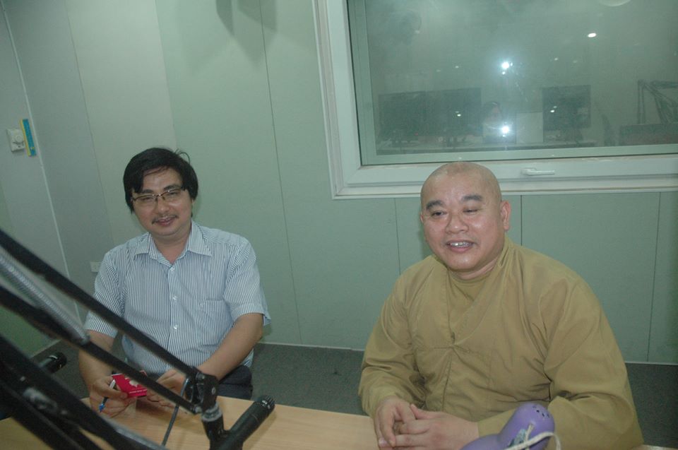 Thượng tọa Thích Giải Hiền tại phòng thu Đài Tiếng nói Việt Nam