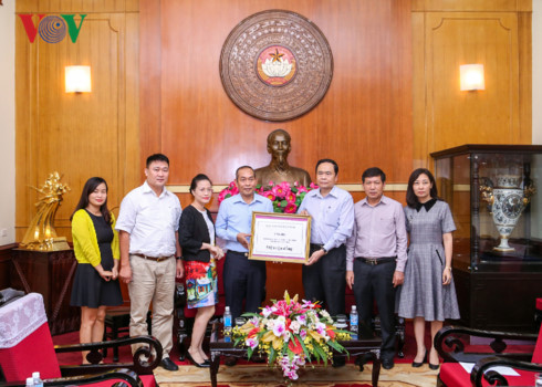 Cũng chiều 16/10, ông Nguyễn Xuân Huy, Phó Tổng Giám đốc, Chủ tịch công đoàn Đài Tiếng nói Việt Nam trao số tiền 502 triệu đồng do cán bộ, phóng viên, công nhân viên của Đài ủng hộ cho đồng bào thiệt hại do mưa lũ thông qua Uỷ ban Trung ương MTTQ Việt Nam gửi đến đồng bào các tỉnh bị thiệt hại bởi mưa lũ.