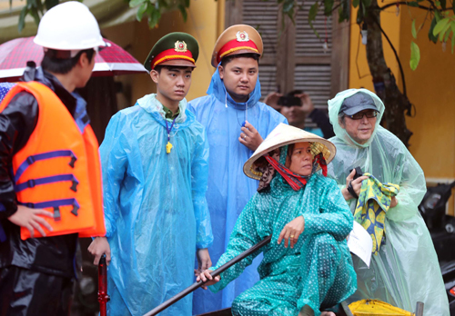 Lực lượng vũ trang tham gia cứu hộ người dân trong bão Damrey. - Ảnh: Xuân Ngọc/vnexpress