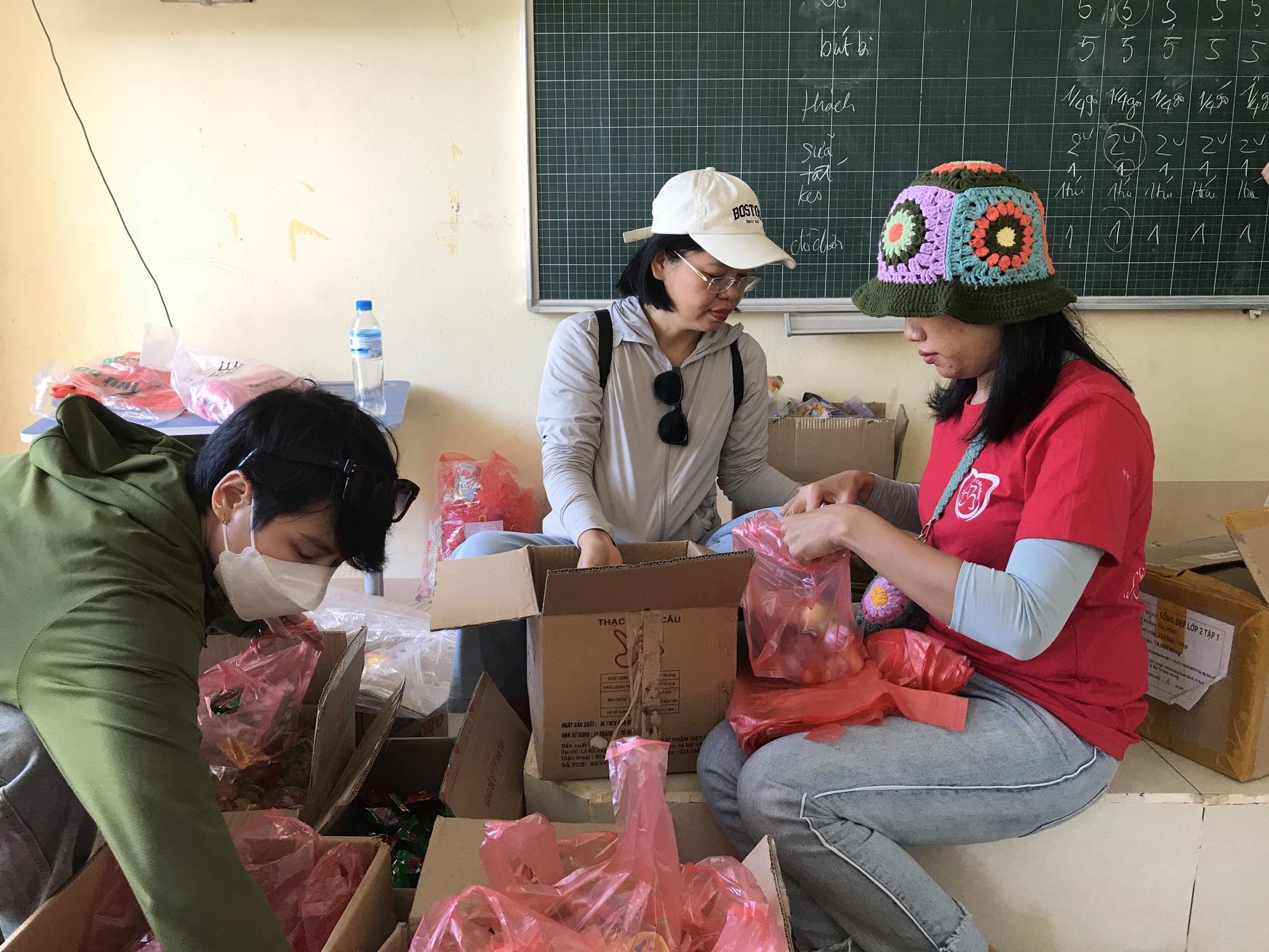 Không phụ lòng mong đợi của các em, đoàn thiện nguyện nhanh chóng bắt tay vào việc. Sân khấu được dựng lên giữa sân trường, những phần quà được chuẩn bị chu đáo, bao gồm: áo khoác, tất, ủng, dép, đồ dùng học tập, bánh kẹo, sữa, thú bông,... Tất cả đều được đóng gói gọn gàng, phù hợp với từng lứa tuổi.