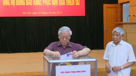(VOV5) - Chiều 13/10, tại Hà Nội, Văn phòng Trung ương Đảng tổ chức quyên góp ủng hộ đồng bào các tỉnh miền núi phía Bắc và Bắc Trung bộ khắc phục hậu quả thiệt hại do mưa lũ gây ra.