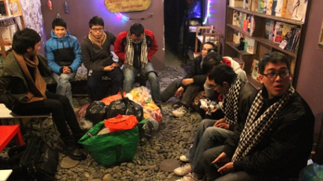 Thấy bà lão cuộn mình trong tấm áo mưa mỏng, nhóm tình nguyện Ấm dừng xe bên đường rồi nhẹ nhàng đặt gói xôi nóng và đắp thêm cho bà chiếc chăn ấm rồi lặng lẽ lên đường tìm thêm những mảnh đời nghèo khổ ở thủ đô.