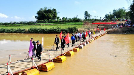 Từ nay, bà con ở các thôn và hàng trăm học sinh đã có thể yên tâm qua lại trên cây cầu phao mới vừa hoàn tất sau hơn 2 tháng thi công.