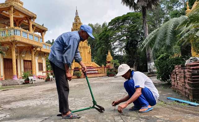 Trong những ngày cuối tháng 9, tại chùa Thuỷ Liễu, xã Thủy Liễu gần chục lão nông, người trẻ nhất đã hơn 50 tuổi, lớn tuổi nhất cũng gần 80 tuổi đang chăm chỉ bẻ tay dê, buộc đà sắt…để chuẩn bị cho đợt đi xây cầu ở xã Vĩnh Bình Bắc, huyện Vĩnh Thuận, tỉnh Kiên Giang. Đây là cây cầu có chiều ngang 2,6m, dài 30,5m do một mạnh thường quân hỗ trợ tiền và nhà sư Lý Long Công Danh, Trụ trì chùa Thuỷ Liễu nhận xây dựng cùng với đội xây cầu của nhà chùa làm miễn phí ngày công lao động.