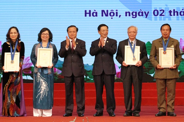 | NSND Chu Thúy Quỳnh (áo dài xanh) vinh dự nhận danh hiệu Công dân Thủ đô ưu tú năm 2015 |