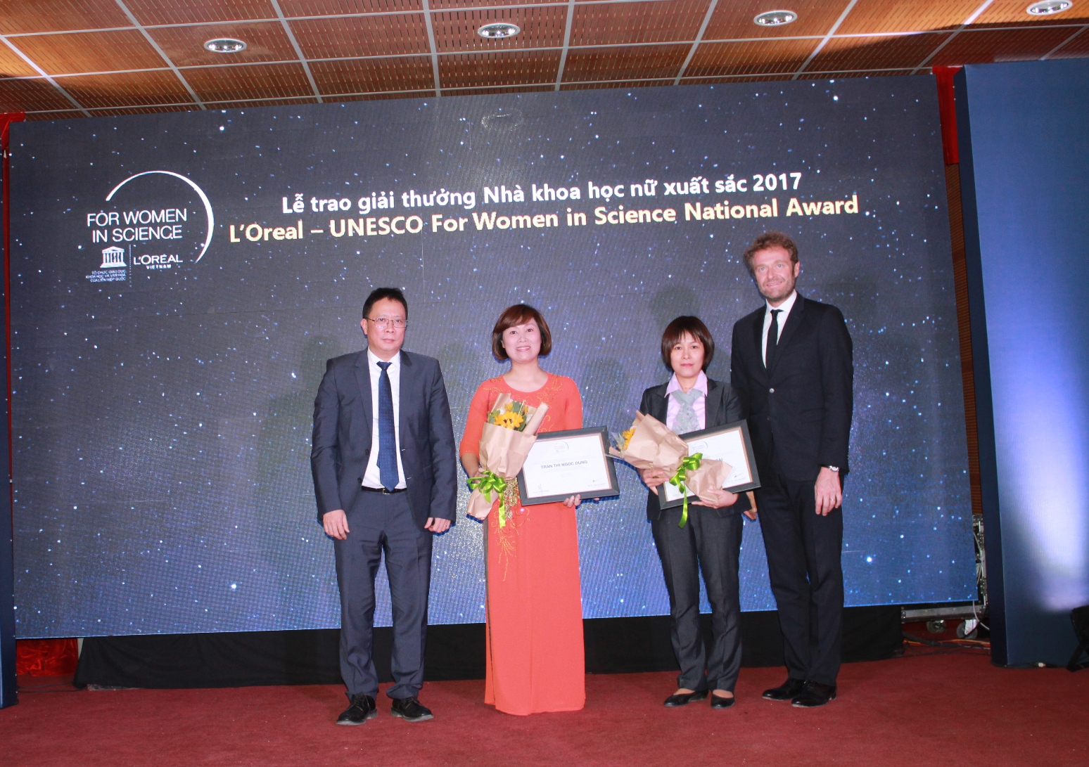 Tiến sĩ Nguyễn Thị Hoài và tiến sĩ Trần Ngọc Dung nhận giải thưởng. Ảnh:vast.ac.vn