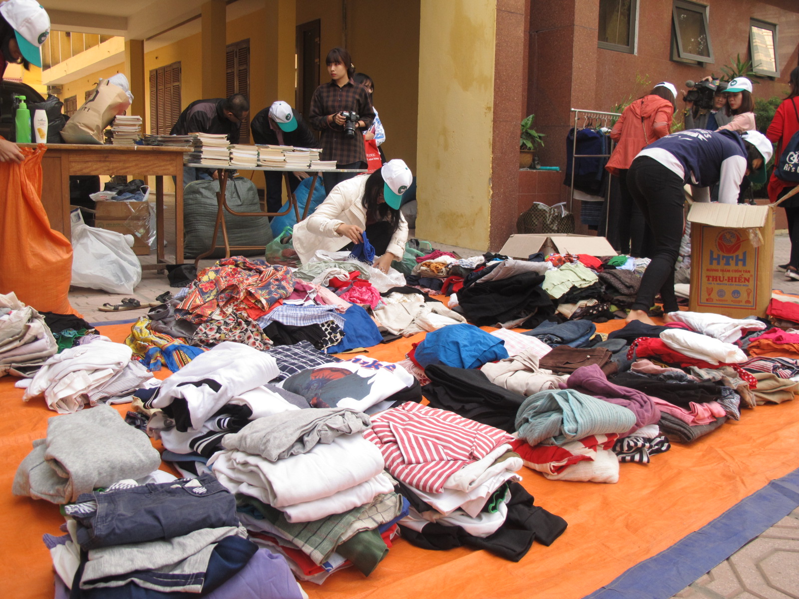 | Các tình nguyện viên sắp xếp quần áo |