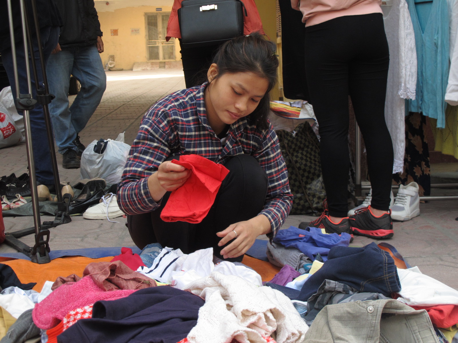 8h20’ sáng, tại Viện dược liệu số 3B Quang Trung Hà Nội, không khí vô cùng rộn rã. Bên ngoài cổng là những gương mặt háo hức chờ đợi đứng ngóng vào trong. Bên trong, những chồng quần áo đầy màu sắc đang dần được xếp gọn ghẽ trên mặt sân. Đến đúng 8h30’, cánh cổng viện dược liệu mở ra, mọi người ùa vào hân hoan chọn cho mình những bộ quần áo ưng ý. Điều đáng nói là mỗi sản phẩm đều đồng giá 2.000 đồng.