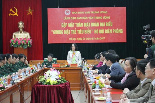 (VOV5) - Chiều 1/3, tại Hà Nội, Trưởng Ban dân vận Trung ương Trương Thị Mai tiếp đoàn đại biểu “Gương mặt trẻ tiêu biểu” Bộ đội biên phòng.