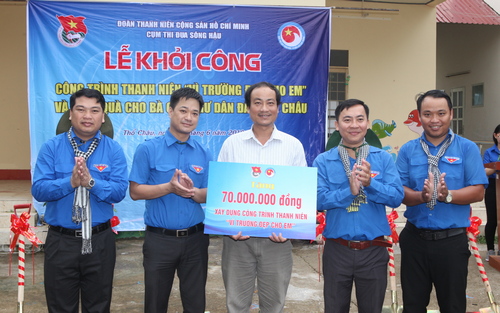 Tuổi trẻ Cụm Sông Hậu trao kinh phí thực hiện công trình thanh niên “Vì trường đẹp cho em” cho đại diện Trường Mẫu giáo xã Thổ Châu. -Ảnh: doanthanhnien.vn