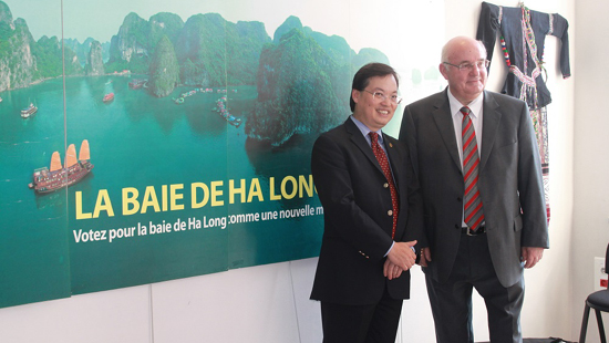 | Đại sứ Dương Chí Dũng chụp ảnh cùng Thị trưởng thành phố Saint Amand les Eaux |