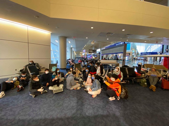 Nhóm du học sinh đang phải ở lại trong sân bay Dallas
