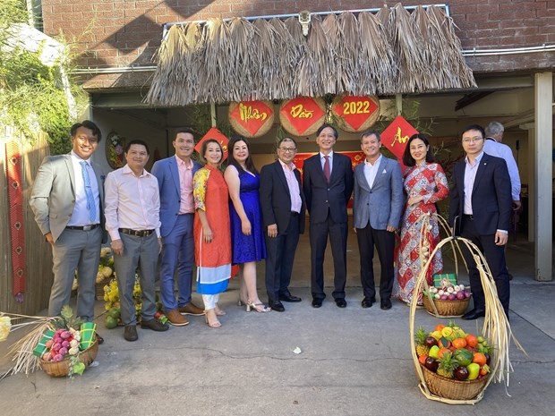 Ngày 22/1, Đại sứ quán Việt Nam tại Australia đã tổ chức cuộc gặp mặt mừng Xuân Nhâm Dần 2022 với sự tham gia của cán bộ, nhân viên Đại sứ quán, các cơ quan bên cạnh đại sứ quán, lãnh đạo Tổng Lãnh sự quán Việt Nam tại Sydney và đại diện Hội Doanh nhân Việt Nam và Hội Sinh viên Việt Nam cùng nhiều bà con cộng đồng, du học sinh tại Australia.