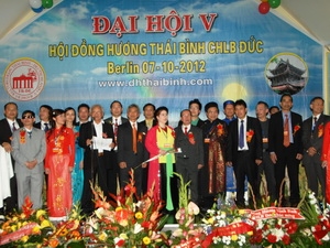 Bà Phan Ý Nhi, Tham tán, Trưởng ban công tác cộng đồng Đại sứ quán Việt Nam tại Đức tới dự buổi lễ đã biểu dương các hoạt động của Hội trong việc sáng tạo, gắn kết bà con cùng hướng về cội nguồn, tích cực trong các hoạt động cộng đồng nói chung, góp phần xây dựng hình ảnh tốt đẹp của cộng đồng người Việt Nam ở Đức; tin tưởng trong nhiệm kỳ tới Hội sẽ phát huy là một trong những lá cờ đầu trong các phong trào của cộng đồng người Việt ở Đức./.