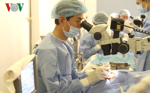 | Các bác sỹ hết sức tập trung trong phòng mổ. |