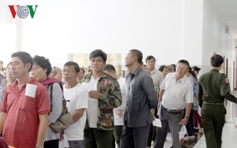Ngay từ sáng sớm, hàng trăm bệnh nhân đã có mặt tại Bệnh viện Quân y 179 Campuchia để chờ được các bác sĩ Việt Nam thăm khám. Dự kiến trong 2 ngày 14, 15/11, đoàn y, bác sĩ Việt Nam sẽ khám, phát thuốc cho 200 bệnh nhân, phẫu thuật mắt miễn phí cho khoảng 300 bệnh nhân tại Campuchia.