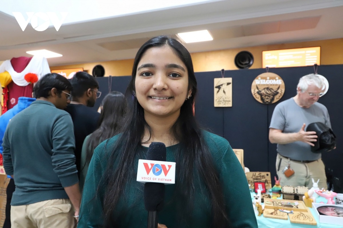Không chỉ có ẩm thực Việt Nam, lễ hội VIETFEST 2025 còn giới thiệu một số sản phẩm thủ công đặc trưng của Việt Nam. Hershi, một sinh viên đến từ Ấn Độ cho biết bạn rất ấn tượng trước những sản phẩm thủ công của Việt Nam: “Những sản phẩm mà tôi thấy hôm nay rất bắt mắt và đặc biệt là một thứ rất hấp dẫn đối với tôi là những bức tranh đốt laser, nghệ thuật hội họa bằng laser.