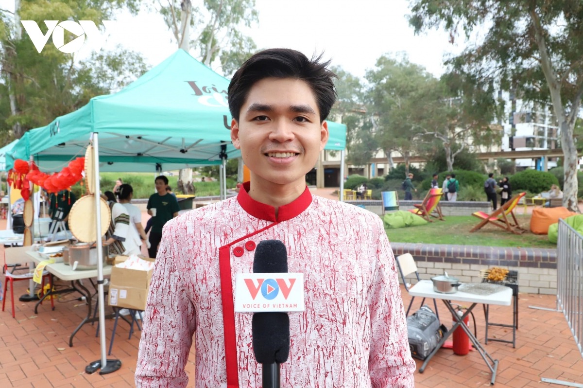 Bạn Hoàng Huy Hoàng, sinh viên ngành Khoa học máy tính, Đại học Quốc gia Australia cho biết: “Khi đến sự kiện này, trước hết là tôi cũng thấy đỡ nhớ quê hương hơn và cũng thấy tự hào mình là một người dân Việt Nam và cũng tự hào Việt Nam có một nền ẩm thực cũng như văn hóa rất là phong phú và cũng rất vui khi nhân dịp này có thể quảng cáo văn hóa hóa đến các bạn bè quốc tế và cũng nhờ lần này mà những người dân xa xứ như tôi thì có thể gặp nhau và thưởng thức ẩm thực Việt Nam cũng như nghe lại những bài hát về quê hương và dân tộc mình”.
