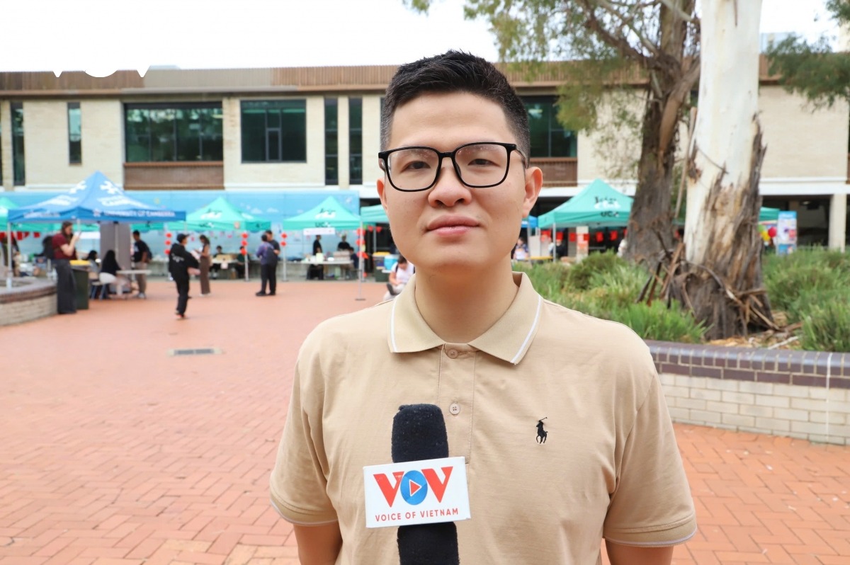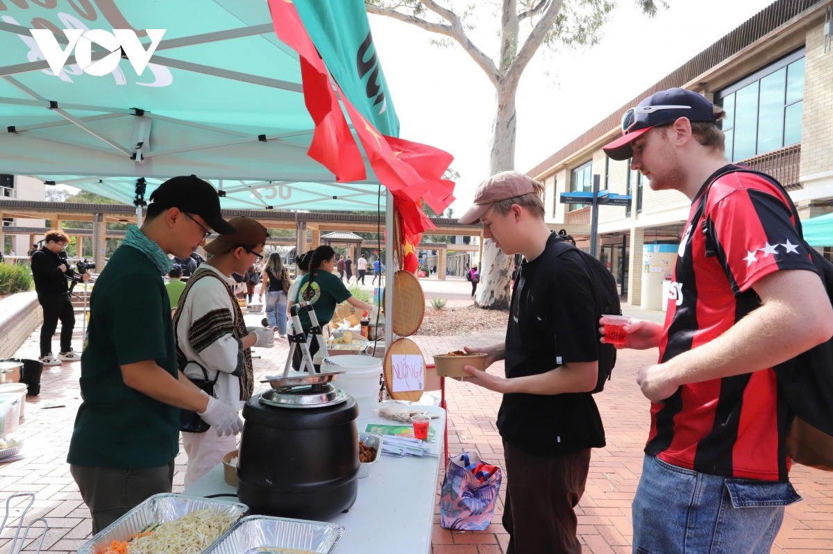 Bạn Trần Minh Đức, sinh viên chương trình Thạc sỹ, Đại học Quốc gia Australia cho biết bạn rất vui khi tham dự sự kiện và cảm thấy đỡ nhớ nhà khi được ăn lại các món ăn Việt Nam: “Bọn em muốn tham gia bởi vì bọn em đang sống ở Canberra mà không tham gia thì cũng thấy có lỗi. Nói thật là nhớ Việt Nam chị ạ. Bởi vì là 2 năm vừa rồi, năm 2024-2025 ấy, ở Việt Nam có rất nhiều ngày lễ lớn. Nhưng lại đúng thời gian nhóm em học xa nhà, xa tổ quốc nên cũng nhớ lắm. Xem ở đây thì thấy các bạn ấy đang mở những bài hát yêu nước, lại thêm những món ăn Việt Nam, ví dụ như bún chả quế cũng gợi nhớ nhà. Bún chả ở bên này bọn em ít được ăn, nên được tham gia những ngày như thế này cũng cảm thấy bớt nhớ nhà, nhớ quê hương.