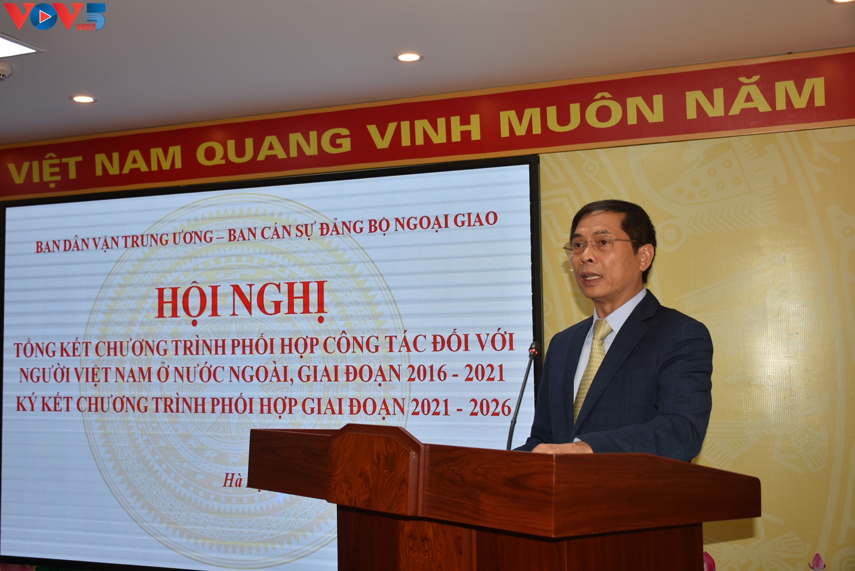 Ngày 26/11/2021 tại Hà Nội, Ban Dân vận Trung ương và Ban cán sự đảng Bộ Ngoại giao tổ chức Hội nghị Tổng kết 5 năm thực hiện Chương trình phối hợp 90 và ký Chương trình phối hợp về công tác đối với người Việt Nam ở nước ngoài (NVNONN) giai đoạn 2021 - 2026.