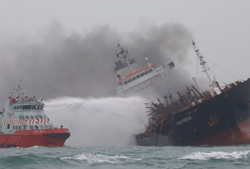 Tàu Aulac Fortune cháy trên biển - Ảnh: SCMP |