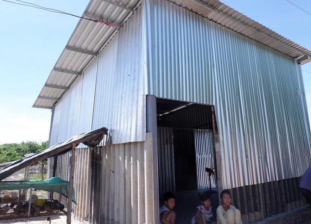 Ngôi nhà tạm bợ của hai vợ chồng nghèo với bốn con nhỏ sẽ được thay thế bằng một ngôi nhà mới do đoàn kiều bào trẻ trao tặng.