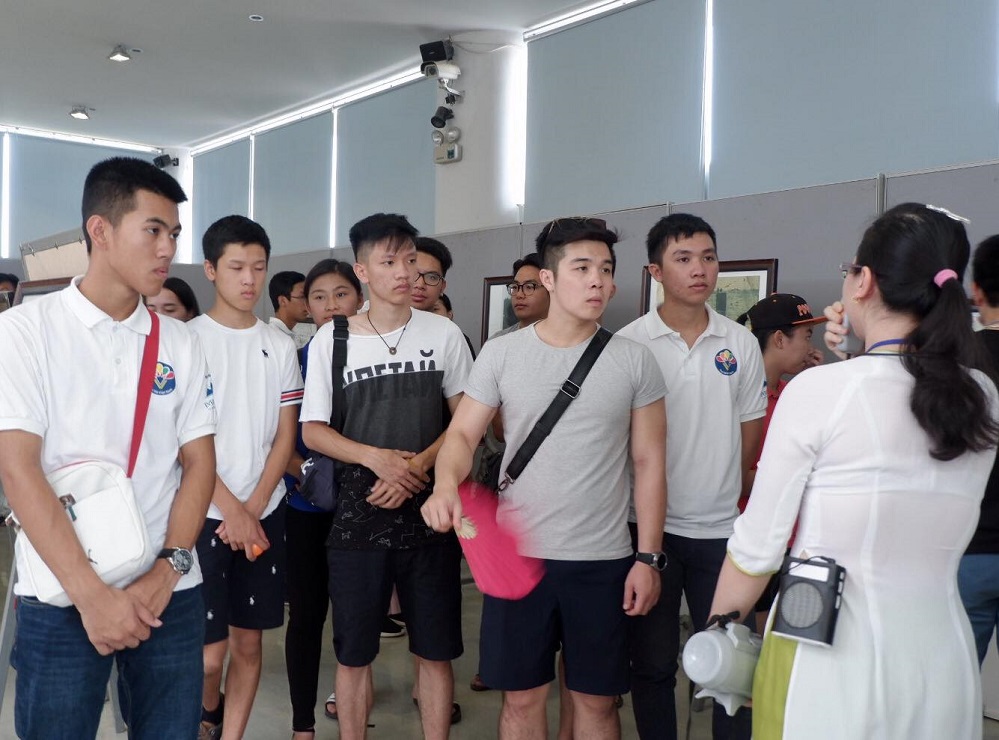 Nghe hướng dẫn viên giới thiệu về các gian trưng bày của bảo tàng