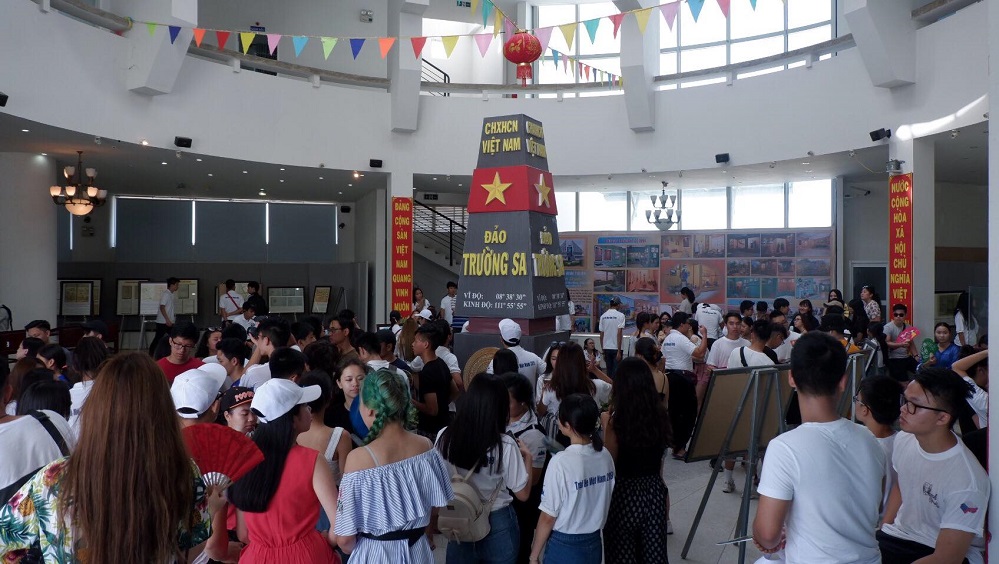 Sảnh chính của bảo tàng đang triển lãm bản đồ và trưng bày tư liệu "Hoàng Sa, Trường Sa là của Việt Nam"
